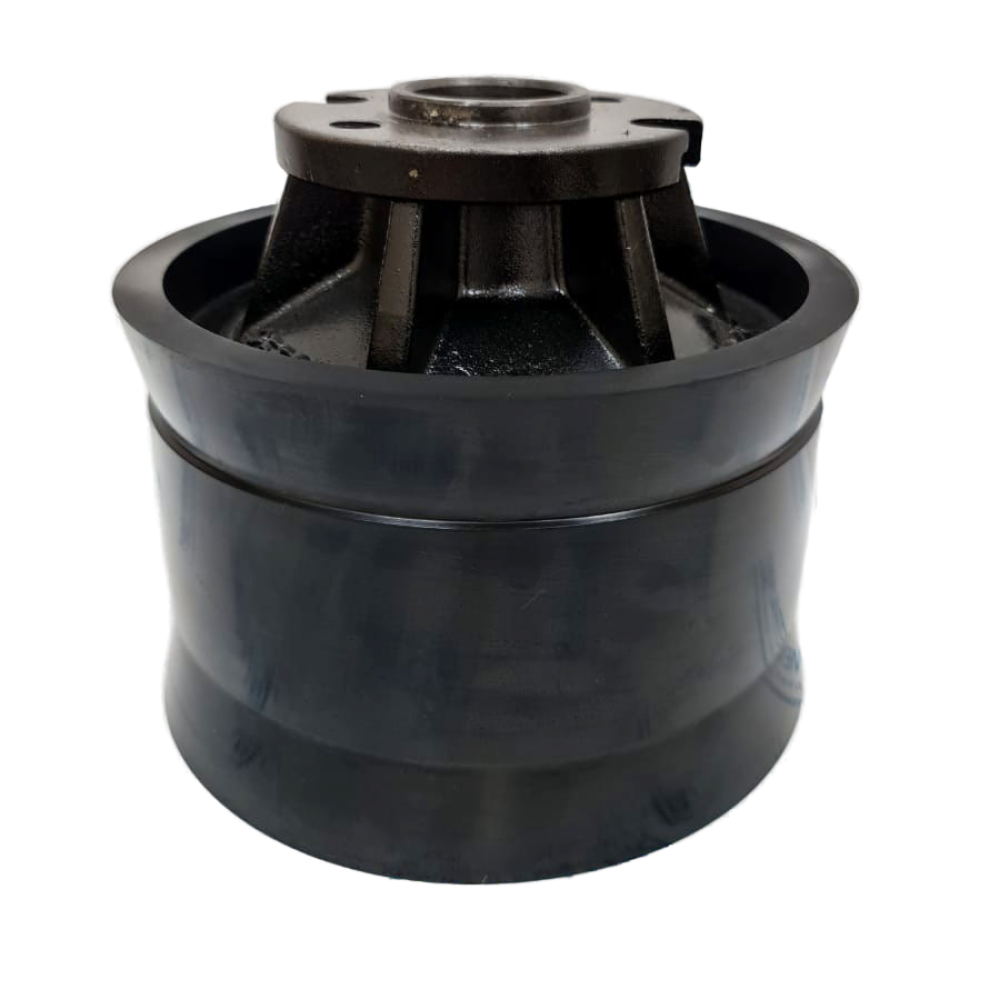Поршень крепится к штоку подающего гидроцилиндра через проставку с помощью болтов и располагается внутри бетоноподающего цилиндра, в котором двигаясь возвратно-поступательно, осуществляет выдавливание бетона в шибер. Резиновая юбка поршня обеспечивает плотное прилегание поршня к хромированной стенке гильзы.