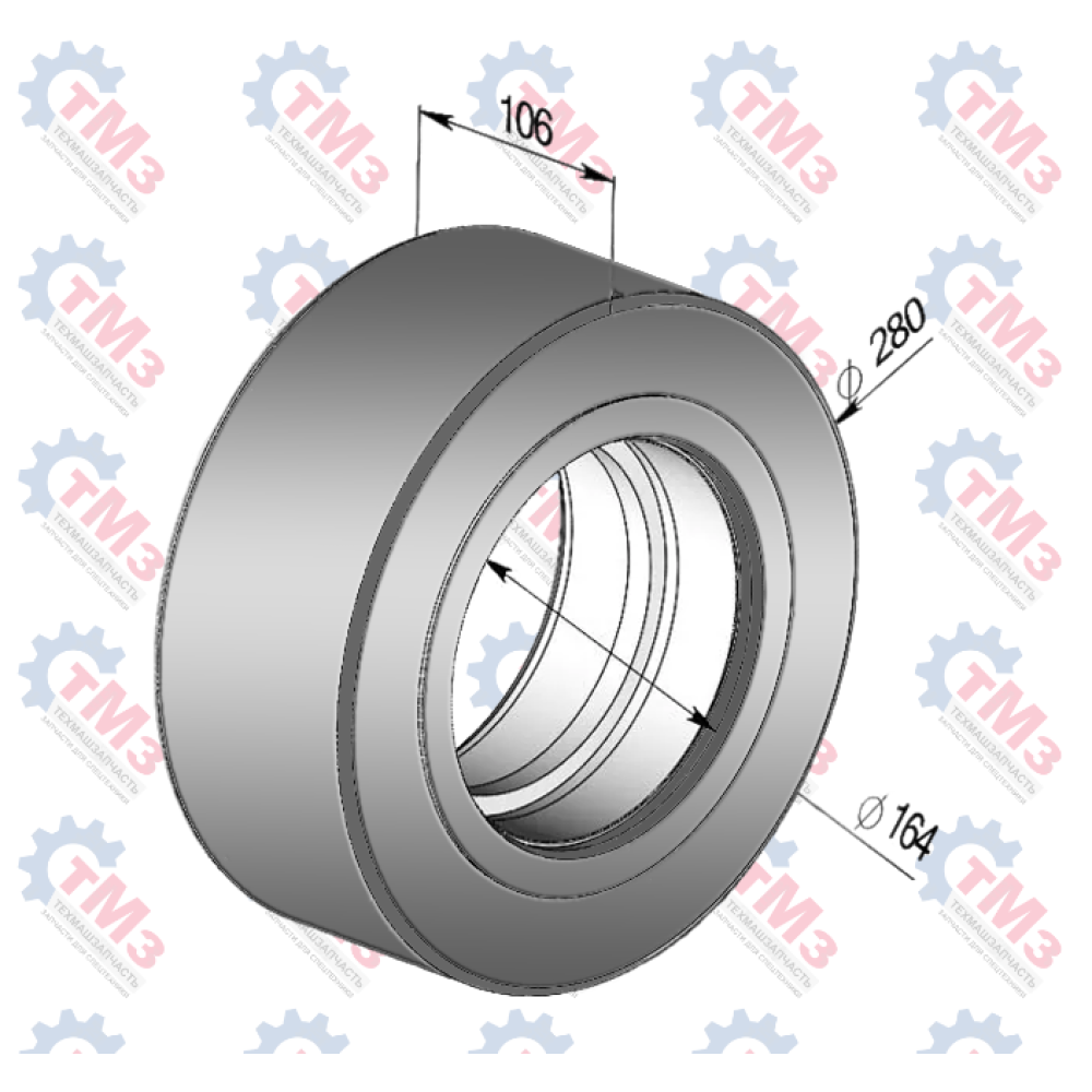 Опорный ролик / каток - деталь воспринимающая нагрузку от веса смесительного барабана и бетона в нем. В обиходе предлагаемую к поставке деталь называют "голый" ролик, т. е., только сам опорный каток, без запрессованных подшипников и втулки. Ролик типа 581451 предназначен для миксеров полезной нагрузкой до 12 куб. метров.