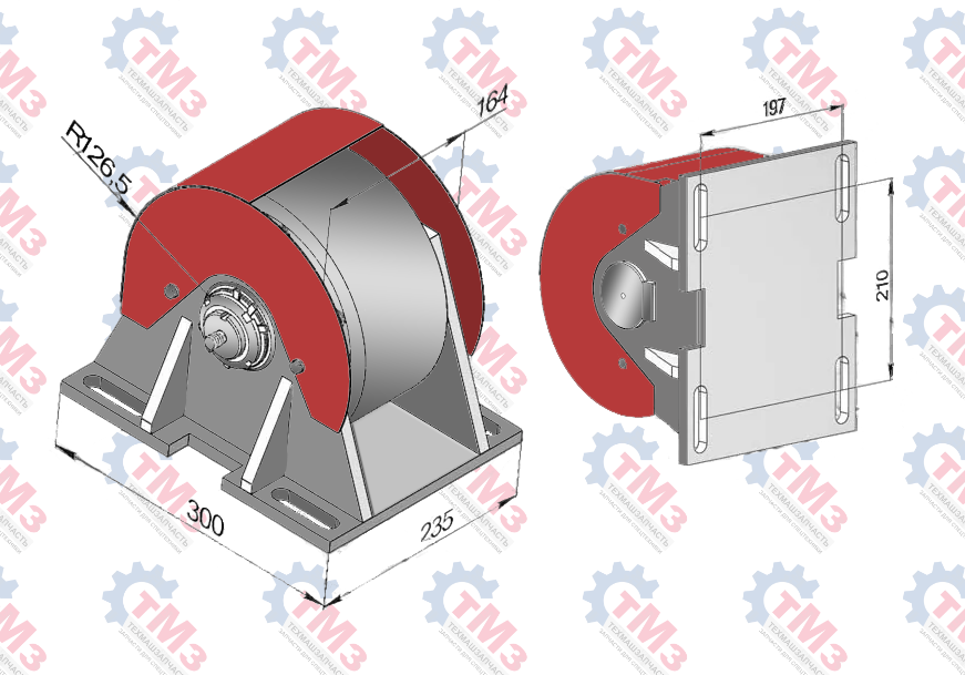 Ролик опорный в сборе используется на автобетоносмесителях полезным объемом до 5 куб. метров. Предлагаемый узел - "в сборе". Он максимально удобен в замене, когда ролик изношен настолько, что его ремонт нецелесообразен или нужна высокая скорость ремонта.